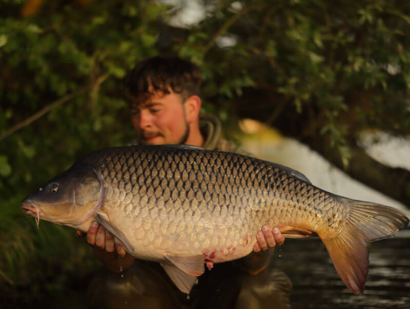 De hengels in de kom hebben al 2 dagen niks opgeleverd, buiten een enkele zeelt om. Daarom besloot ik deze daar weg te halen. Aangezien alle aanbeten vanaf de vaargeul kwamen, verplaatste ik de hengels naar een plek aan de andere kant van de landtong waar we ons bevonden. Ik legde er twee in de vaargeul en één in een lelieveld bij een andere kom in de buurt van diezelfde vaargeul. Kort daarna ving Nick een stevige vis net iets onder de 10 kg. Verder bleef het helaas stil tot 20:00, maar toen gebeurde het onverwachte. Een lange run gevolgd door een sprintje van mij door het bos resulteerde in een prachtige hoog gebouwde schub van maar liefst 16,8 kg. Een absolute beauty. Zoals gebruikelijk werd er weer geloot. Nick of Joey? Ditmaal had Joey het geluk en kreeg hij alle hengels tot zijn beschikking.
